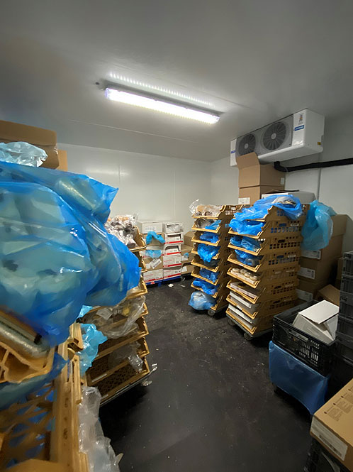 In the storage area, there are also four rooms. Two are cold rooms used for storage, one is the technical room for the cooling production and the last one is a cold room used to store the rubbish.